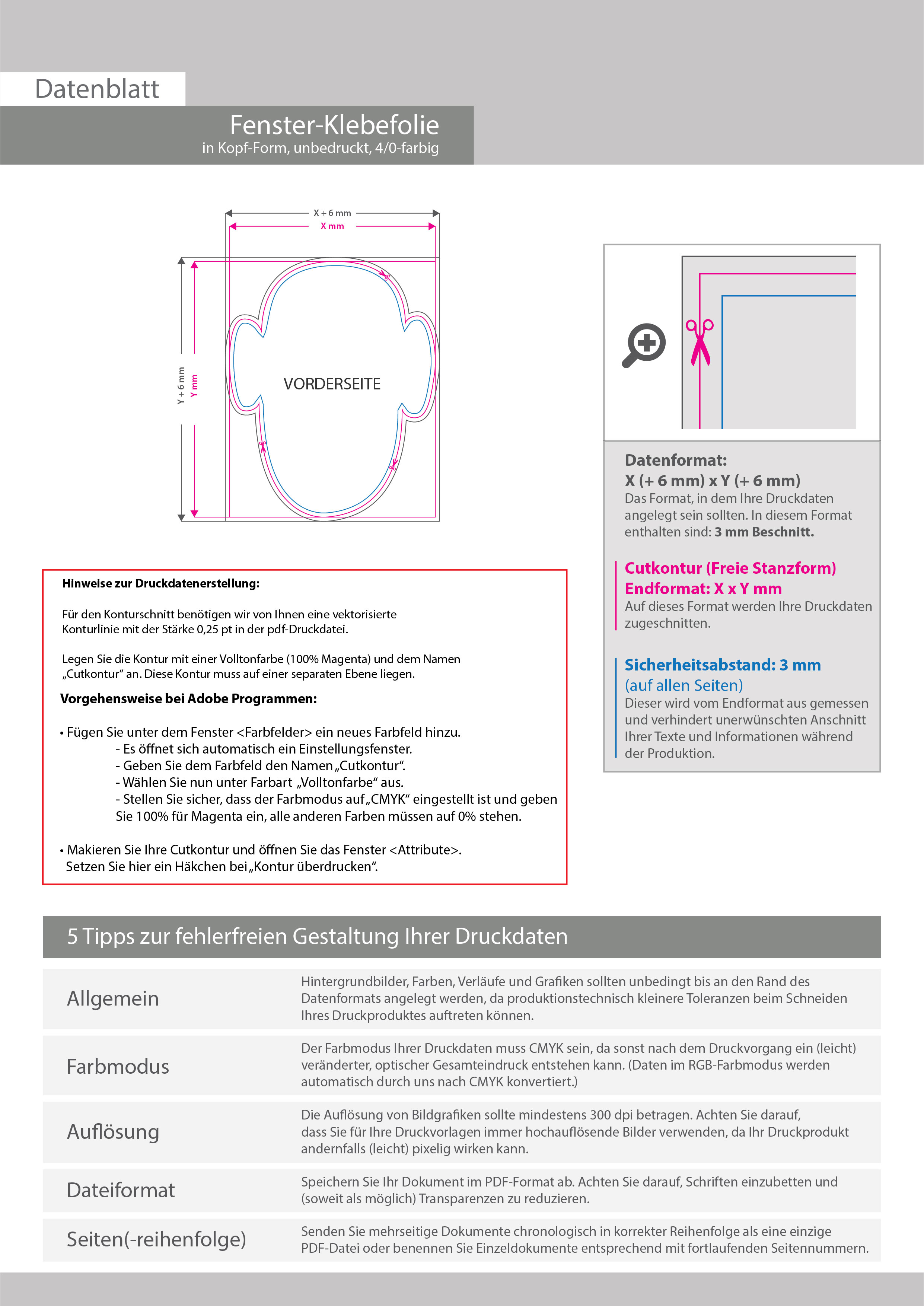 Fenster-Klebefolie unbedruckt in Kopf-Form konturgeschnitten