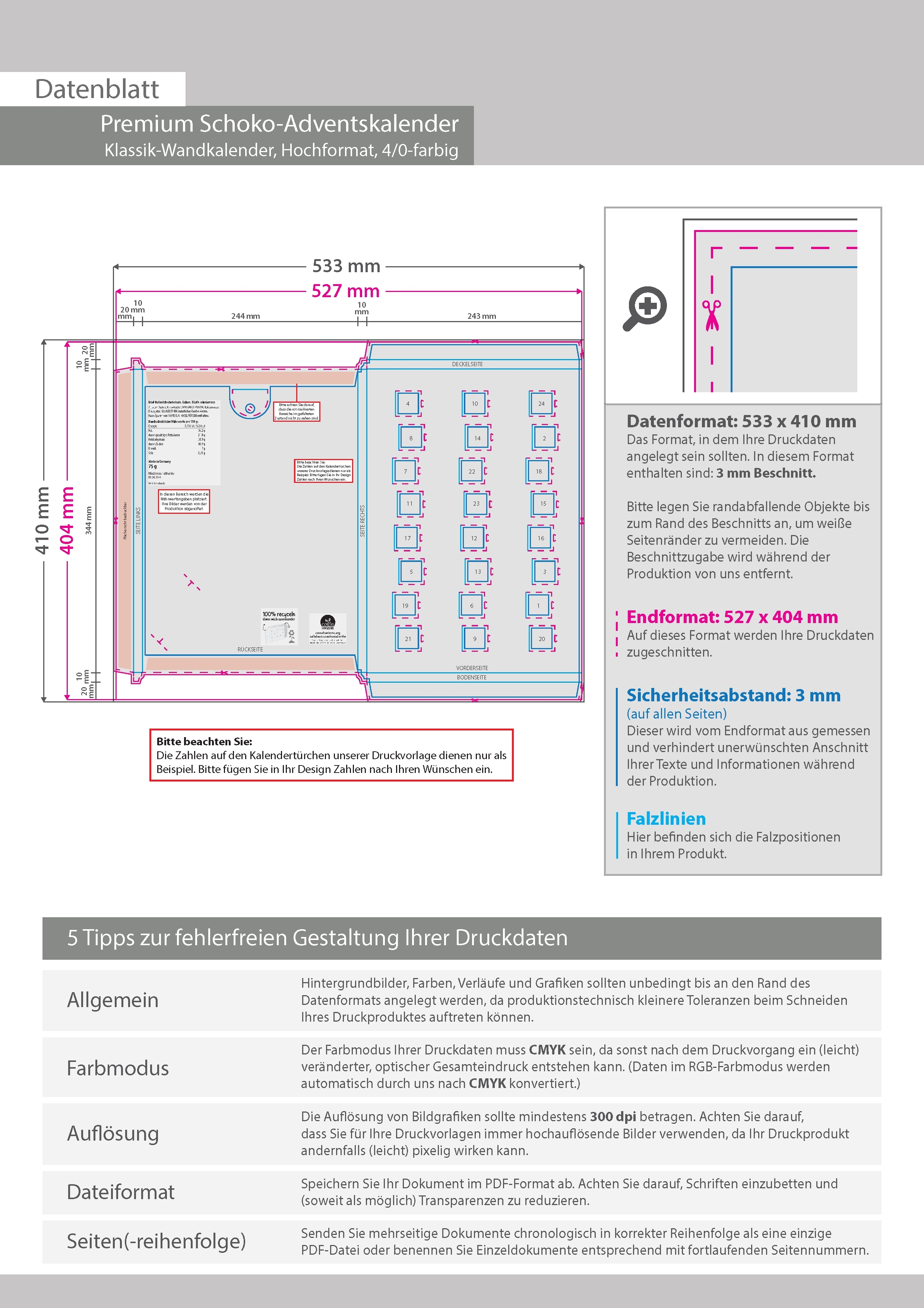 Schoko-Adventskalender, Klassik-Wandkalender, Hochformat, 4/0-farbig bedruckt