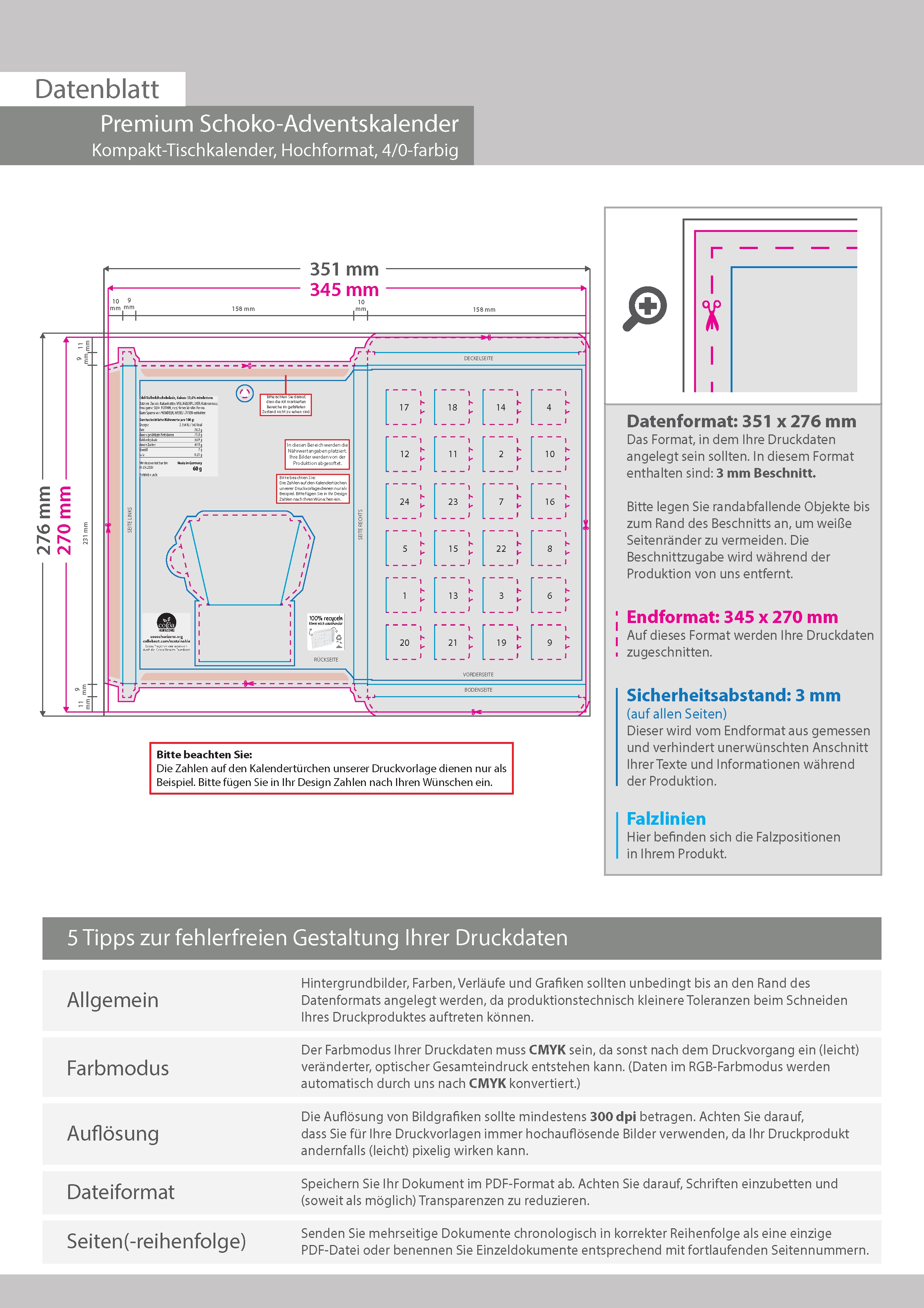 Schoko-Adventskalender, Kompakt-Tischkalender, Hochformat, 4/0-farbig bedruckt